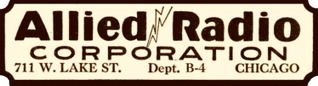 Initially, Allied Radio's purpose was to distribute radio parts for Columbia Radio Corp. At the time, Allied Radio occupied a building at 711 W. Lake Street in Chicago, IL (building shown above). Coincidentally, this address was also used by Columbia Radio Corporation from 1926-1927, Hamilton-Carr Radio Corporation from 1927-28, and Randolph Radio Corporation in 1928.
