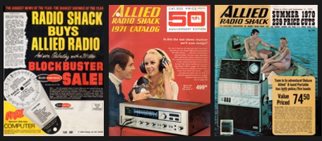 1970: The retail division was merged with Tandy's retail unit to become Allied Radio Shack. But as a result of the merger, many major shopping centers would have two Allied Radio Shack stores competing for the same dollars. As a result, the former Allied Radio storefronts would fade away, with the former Radio Shack stores taking on both product lines (and the expense of the extra inventory.) This was in some ways a more difficult task as the original Radio Shack storefronts were typically smaller than the Allied Radio stores.